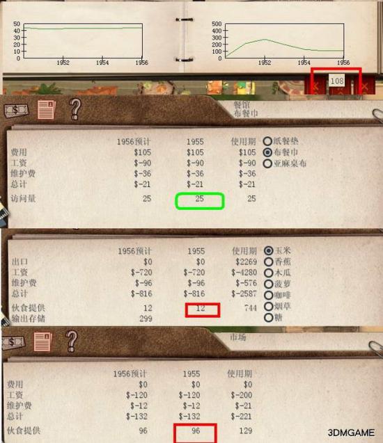 农场12单位,市场96单位, 加到一起还是108单位,而餐馆同样有25人次的访问