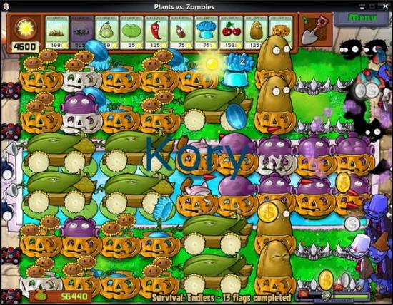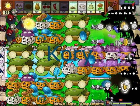 2、25波以后,要集中精力了。防止前排防线被攻破,注意玉米炮的节奏和攻击的方位(玉米炮能攻击九宫格,所以一定要看准了再点,发挥最大的效能)。