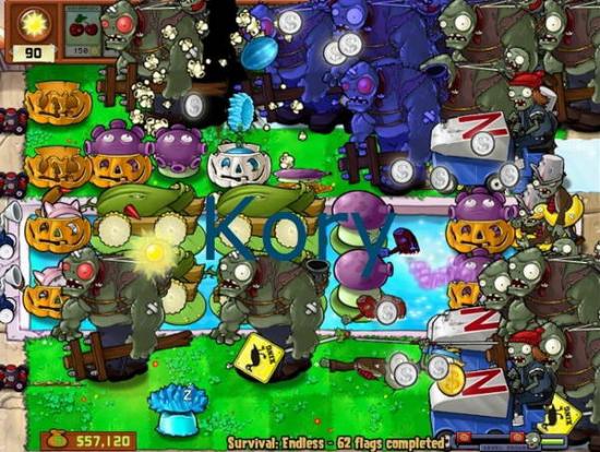 拼了命熬到了62波,n个大僵尸和n部雪车,4个玉米炮和那几个攻击植物,根本没得打……