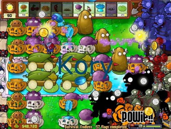 57波,加强的中部防线在没有玉米炮的支撑下还是失守。小僵尸数量增加到5~6个/次,而且一次接一次的时间更短。。。