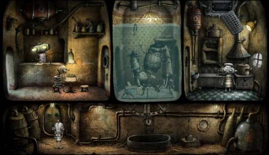 4、掉下来的电梯那的流程:先去和铁窗里的母机器人对话,然后操作母机器把锅头拿下来再,去壁橱里拿出玉米放火上烤,这时苞米花会从烟囱吸进去把外面的铁棍冲下来,捡起进去给母的。踩上锅头,用钩子把上面的冷气打开,再用钩子把里面被冻住的管子拿下,把锅头放回火上,再把管子放锅里面加热,管子变软,把里面的油用管子接出去即可!