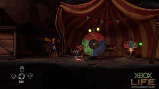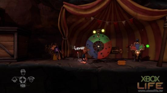 在右边的机器选择好一个颜色之后,拉下一旁的操纵杆来启动中央的轮盘。