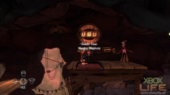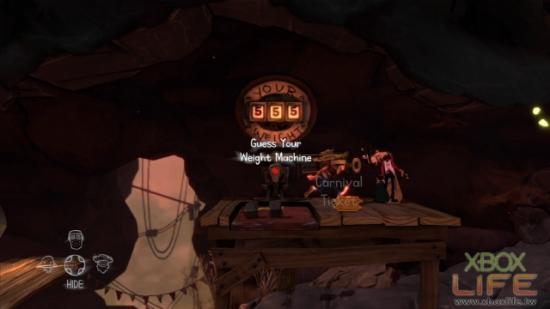 而左侧则有一个放置体重计的摊位,老板会跟你玩猜体重的游戏。只要他猜错了,你就能赢得奖券。