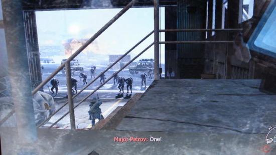 到达目标地点油站后,埋下C4炸药为后备计划B准备。随后来到下一个目标地点与中尉汇合,进入建筑物候中卫会干净利落的收拾掉一个敌人,玩家的任务是去2层寻找ACS模块。捡到模块后Mac中尉被敌人的部队包围,接下来在敌人倒数之前按下引爆按钮,爆炸的C4炸药会在瞬间吸引敌人注意力,此时立即拔枪射击。之后更随中尉一路逃亡,注意路途中会有敌人的雪地摩托出现,被撞倒的话会直接毙命。逃出基地后开火干掉几辆雪地摩托,就会开始摩托逃亡战,玩法类似赛车,RT键加速LT键可以射击,小心的躲避敌人的攻击,然后刺激的飞跃过悬崖即可完成本任务。