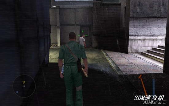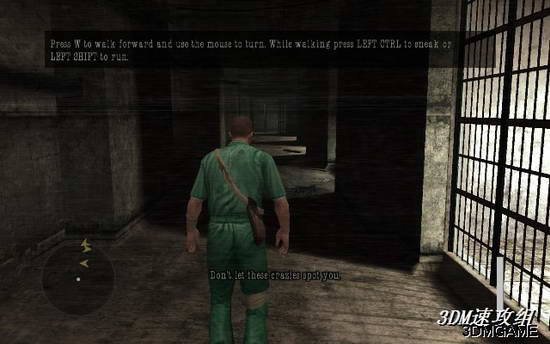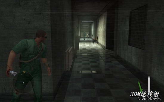 第一关,越狱,先一直走,拿到针筒,并遇到第一个敌人,背对你。
