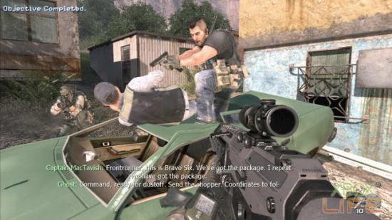 别动,肥皂用前作长官PRINCE(普林斯)给的手枪指著军火商。为了追查莫斯科机场屠杀事件的源头,玩家扮演特战部队的ROACH(蟑螂)与肥皂在巴西热内卢的贫民窟追寻重要军火商。