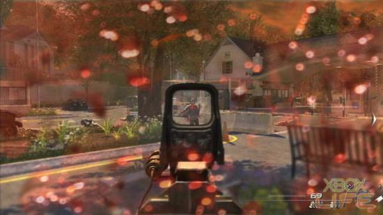 内红点的瞄准相当方便,只要红点对到目标就可开枪,可加快瞄准射击的速度。画面变红代表玩家受伤,得找地方掩护等待恢复。