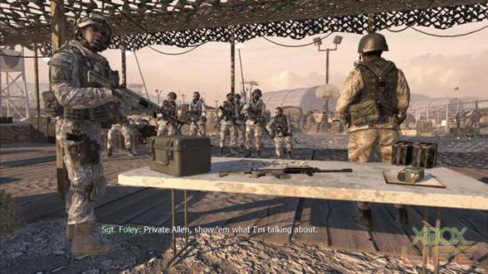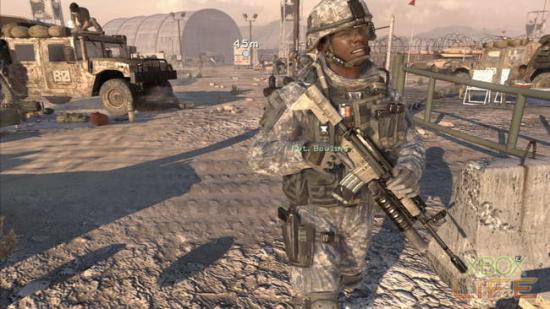 就像看好莱坞特战电影一般,全剧绝无冷场。一开始玩家就置身阿富汗战场,保护己方的搭桥车完成任务。枪枝以及内红点画得相当细腻。