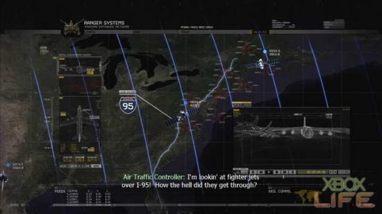 由于防空系统被蓄意破坏与扰乱,藉口报复的俄罗斯空军大举渗透美东,直接空降在维吉尼亚州与华盛顿特区。这次游戏将战事引到美国本土的心脏地带,剧情震撼力十足。图片是美国东部地区,红点代表入侵的敌军空军部队。
