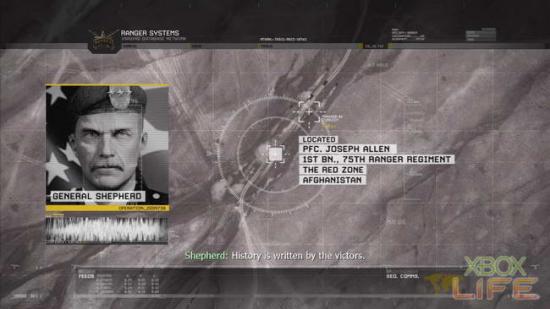 每关的过场动画会有人物介绍以及旁白,主要角色Shepherd将军是第75游骑兵团的指挥官,出任务时的旁白非常引人深思:历史是由胜利者撰写,此话的含意贯穿全剧。