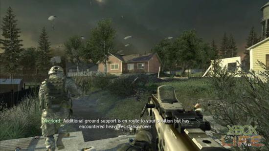 战役以前作的著名事件搭配磅礡的音乐当开场,让老玩家回忆之前的重要片段,因为剧情内容是前代的5年后。狙击镜瞄准的是前作最终目标-Zakhaev(札哈夫),这万恶的目标在死亡5年后成为新俄罗斯的英雄,俄罗斯政局已有重大转变