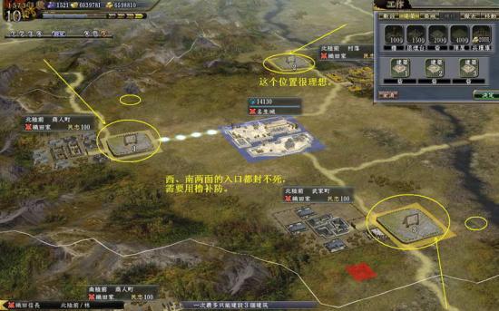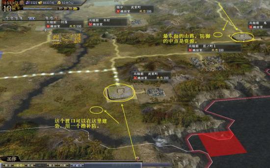 西山城:东面有1个渡口是可以过的,西南的2个路口虽然近,但一个砦是封不住的,除非牺牲一个资源。