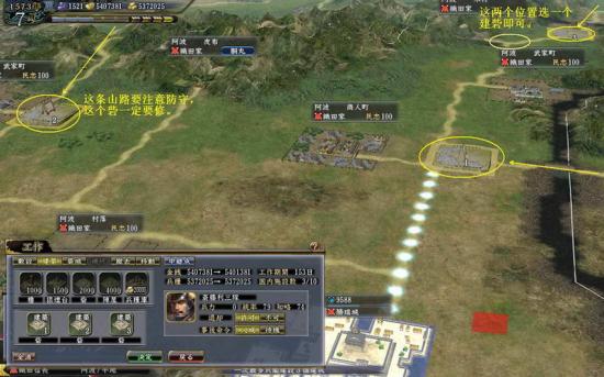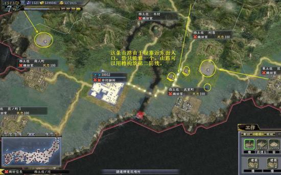 东面虽然有三处入口(通向三座城),但其实只要在武家町旁的通道上建砦就能同时防御三处之敌。