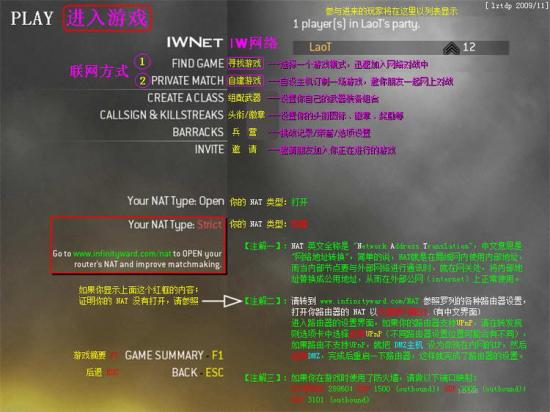 本章节主要是详细介绍如何自建主机进行联网游戏的,其它项设置请参照论坛上已出的帖子!本人对COD系列的各项成就、技能、模式等不是很熟,难免有误,如有错误或不当之处,请大家及时提出指正,我会立刻修改!!!