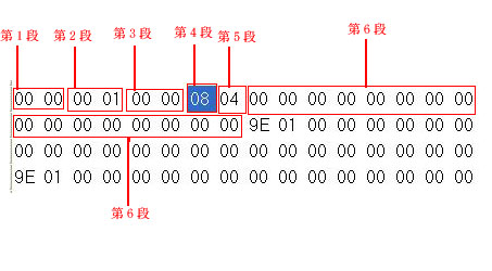 第5段:武器伤害加成,就是游戏中我们可以升级的那个伤害,最多只能20,也就是16进制的14。