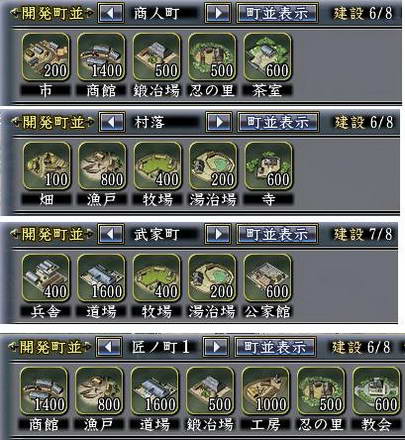 注意:渔户和水田是互替的,靠海的村落和匠町可以造渔户,不靠海的则是水田