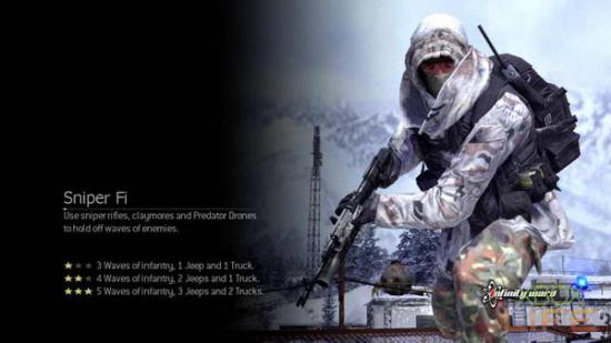 Sniper Fi:第二关Sniper Fi可说是初期牛刀小试的关卡,二位玩家会出生在一处制高点,并且利用狙击枪来防御一波波敌人的攻击。敌人尚未出现前,玩家最好先拿取一旁的克莱莫地雷,放在置高点前后的楼梯附近,如此一来玩家就可以安心地狙击前方来袭的敌人。记得放置克莱莫地雷时,二个地雷所放置的地点不要太靠近,以免敌人踩到地雷时造成连锁爆炸效应,变成白废工。