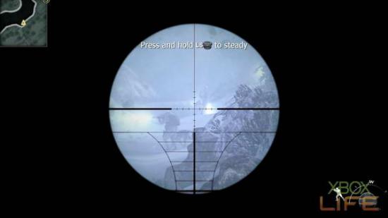 笔者建议的路线是一直靠著地图右侧前进,前进到离目的地220M左右时可以看到二组敌人在巡逻,此时只要按兵不动让他们通过即可。