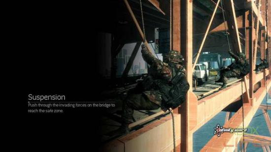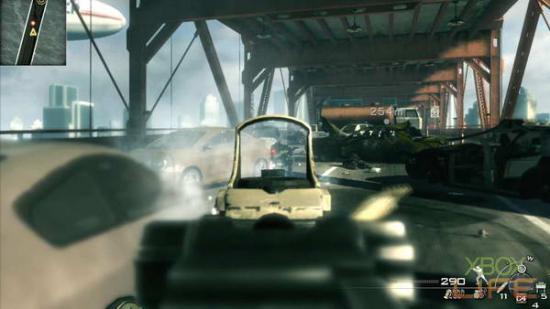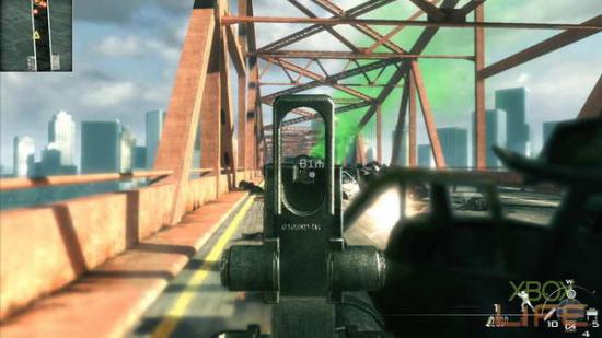 前进至目的地81M处,地上会有许多RPG供玩家使用,笔者建议二位玩家都拿一把RPG备用。先射掉大桥右侧出现的直昇机后,目的地绿烟上方会出现二架直升机,并且会有许多敌人从直升机上降下来,二位玩家只要在最短的时间内,把二架直升机给射下来后就能清掉大批敌人。紧接著再用RPG射爆最后方的油罐车,炸死其馀的敌人就可以平安过关。