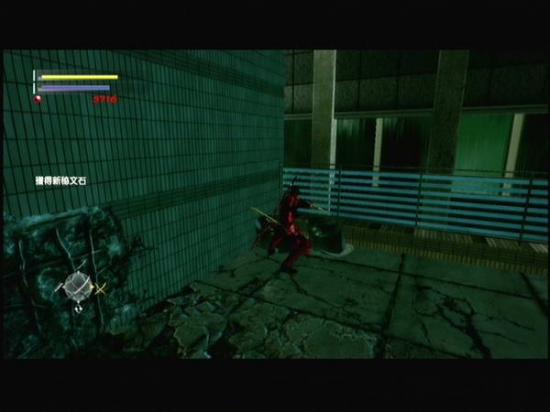 追直升机的路上躲避第一次直升机的导弹后前走来到尽头,勾爪过去,解决掉杂兵后前走来到单杠处(图1)别用单杠跳过去,直接向下跳,角落里的油桶就有秘文石