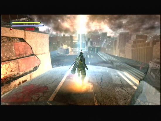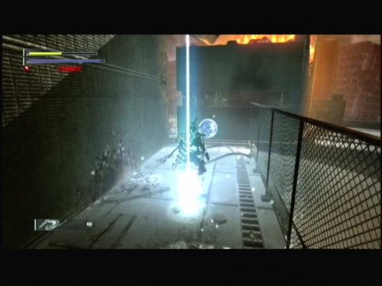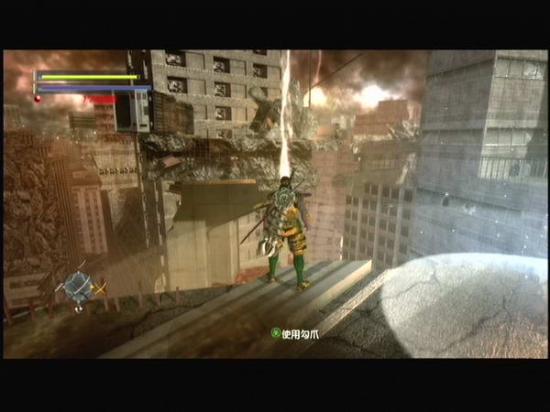 一路左走,干掉巨炎魔后顺着路走,贴墙来到一个桥上(图1)右走使用勾爪(图2)连续的勾跳后在可以打破墙壁的左面