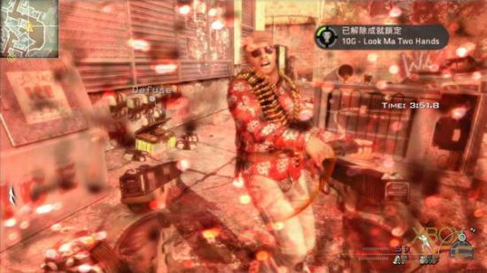 Body Count:这个任务的目标要求玩家取得三万分的杀敌奖励分数。经网友透露的打法指出,这个任务的解法非常简单,只要在游戏一开始捡起地上的AK-47与RPG进行攻击,就能一口气取得二万多分的奖励分数。快速捡到上述的二样武器后,快跑前进至地图右侧敌人施放烟幕弹的后方,立即使用榴弹枪射向道路末端的运兵卡车;成功击中后,卡车与车上的敌军会瞬间化成灰烬,并且玩家会连续获得十连杀的Combo连杀奖励分数。在连杀奖励分数计算的同时,立即将AK-47切换成RPG,攻击道路上的二部运兵装甲车,就可以直接完成三万分的杀敌奖励条件。如果玩家採取的连线合作模式,二位玩家可以採取分工合作的方式进行杀敌,一位玩家正在追击运兵卡车时,另一位玩家就可以扛著RPG负责攻击装甲车。