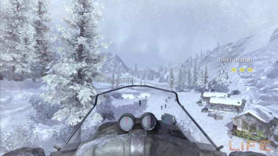 Race任务是FPS游戏类型中,少见的轧车杀敌之任务模式。二位玩家分别骑乘雪地摩托车,在七十秒内抵达终点就可以获得三颗星评价。除此之外,路途上还会有非常多敌人会追击二位玩家,甚至使用RPG试图把玩家给打下来,如果玩家不幸整「粒」RPG吃下去的话,就得从头来过。笔者在这裡提供一个能够大幅降低秒数的方法,在准备开始催油门往前衝时,会有一段3、2、1、GO的倒数,玩家只要在倒数至「GO」的同时按下手把的RT键猛催油门,时机如果正确,画面会出现Quick Start的字样,并且雪地摩托车会瞬间爆衝,为玩家节省不少起步的时间。