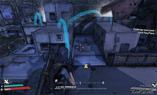 跳下楼以后直走 (黄线结束位置也就是右手边蓝房子那) 然后跳上石头 如图再跳上 棚子、石柱、屋顶 【这条路线是往那个最高的箱子地方跳 另外还知道两个方法可以上那个地方 但这个算是最安全 而且比较快的】