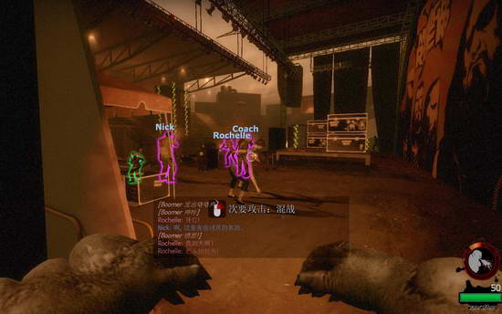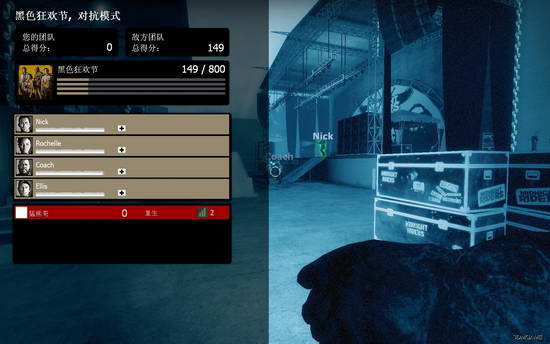 刚才也是比较闲,所以就和电脑来了一盘对抗。我一个人扮演感染者,对付4个电脑(很有难度,大家可以去试一下)有人或许问,一个人能玩对抗么?当然可以,和一代一样,只要输入以下命令就能一个人和电脑玩对抗(不过2代的电脑不会自己走,只会呆在原地,更不会开启机关,所以,我建议玩每个战役的最后一关,先加入生还者,在开启救援之后就加入感染者)命令如下