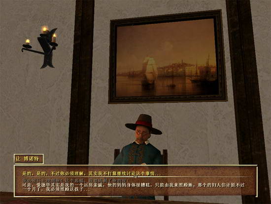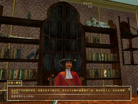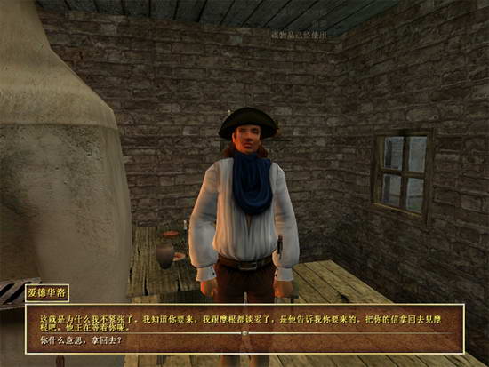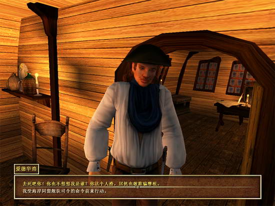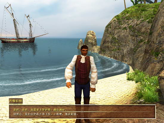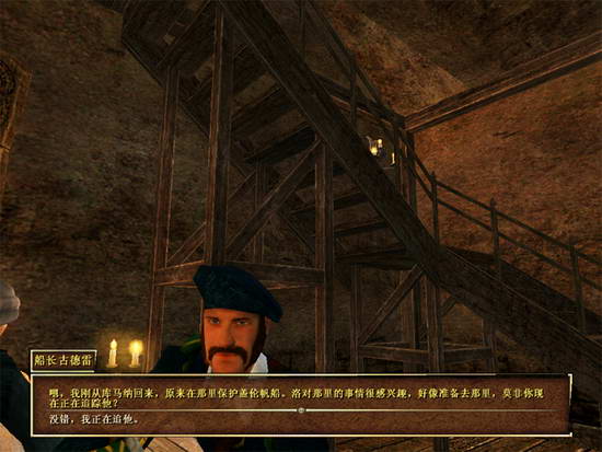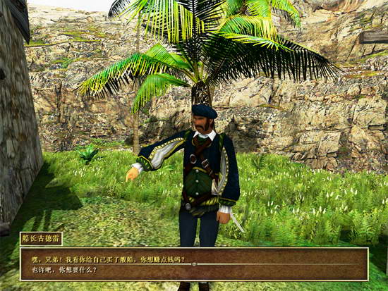 来到普林西比海盗港(或者之前去百慕大去和海盗头子『杰克曼』对话,会提示你去普林西比,前提是你不能接受任何国家路线任务)在大街上遇到这么一位私掠船长。