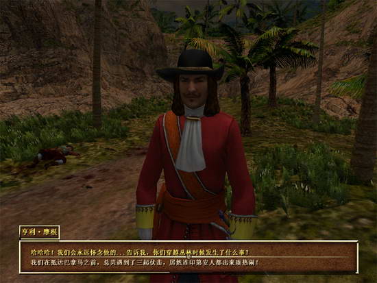 解决后进入下一个场景,摩根的队伍已经杀到巴拿马城下,可惜我这边就我一人了><,2边混战,不亦乐乎。全部消灭以后,摩根灰溜溜的跑了过来。对于索金斯英勇牺牲,摩根感到很欣慰(自己的竞争对手死了)在确定巴拿马的没有守军以后,摩根让我去总督府内间搜刮政府资金,作为战利品