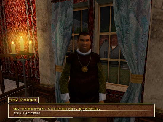 来到内间,要挟总督说出黄金的藏匿处,被告知,在身后的箱子中,但箱子的钥匙在要塞司令处,看来我得跑一趟要塞,找到钥匙。