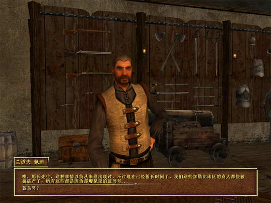 来的普林西比,进入商店和店主对话,获得信息,推测出百慕大有一条秘道,可能是蓝鸟号运输存货的地方。再次回到百慕大