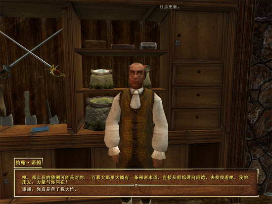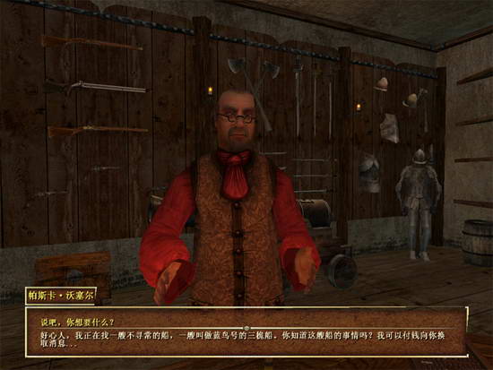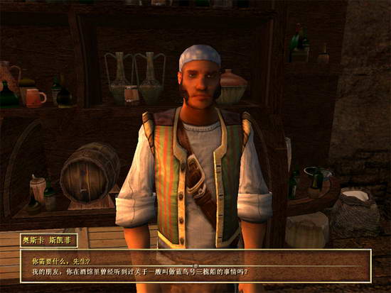 然后无奈,找酒馆老板了解消息。得到信息,说古巴岛的普林西比海盗港商店店主可能知道更多的信息。