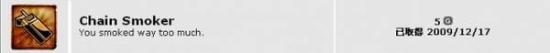 这是一个抽烟要抽100次的成就:Sean只要站著不动,按一下左类比钮就会开始抽烟,不用呆呆站在原地等他自己拿烟来抽;你可以在点完烟后第一次将烟拿在手上时就移动一下,他就会自动把烟丢了,这样算一次,不然你要等他自动把烟丢了有时候要等很久。你可以进入主选单的STATS选项的第二大项最后一个看你抽烟的次数。