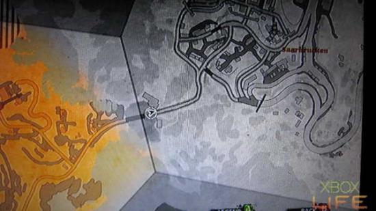 Saarbrucken就在地图的右上角,这区永远处在黑暗地区中,而且无法用一般的方法进入,如果你把车停下来的话,卫兵过一会儿就会进入警戒状态,想要进入该区的话,只能自己开门进去,但是进去后要小心,因为这裡的纳粹都很凶,常常看到你就直接进入警戒状态了,所以千万要小心;以下来讲解如何进入该区的方法。