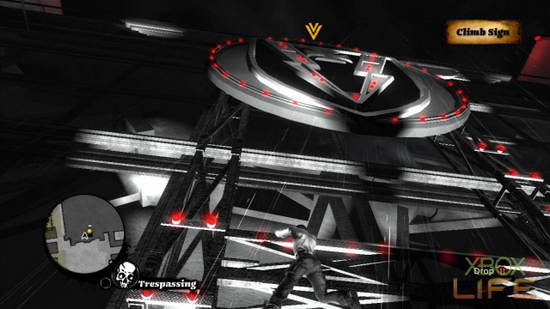 一路朝著雷达所指示的路线行走,攀过图片所示的看板,玩家只要顺著红色电灯泡的路线攀爬,就可以顺利进入工厂的最底部。来到工厂内部后,玩家就可以捡取纳粹的机枪,与工厂内的敌人正面火拼。