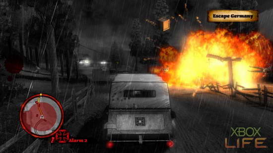 把纳粹的设施给夷为平地后,史恩会躺在酒吧后方的藏身处稍作休息。接下来游戏会进入一段回忆剧情,时间回到三个月前,史恩宛如亲兄弟的朱尔斯与德军赛车手发生了衝突。玩家会驾驶卡车前往德国柏林赛车场,只要沿著雷达的路线指引,就能顺利到达赛车场。