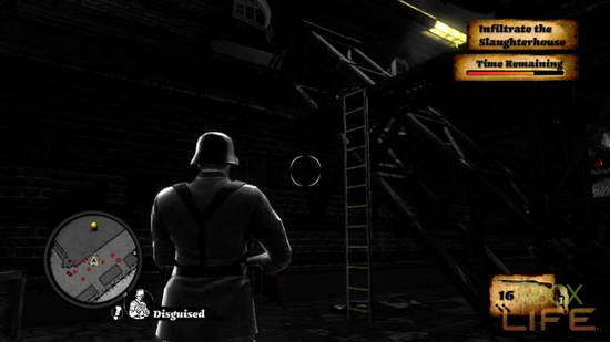 到达雷达所标示的地点时,路克告诉史恩前方戒备森严,你这身打扮进去马上就会被枪毙的,因此路克指著桥下的一名纳粹军人,要史恩把他解决掉并且换上他的军装伪装进去比较安全。玩家成功伪装成纳粹进入屠宰场后,最好不要在这裡作出一些奇怪的动作(跳、跑等),以免被纳粹识破而惹来不必要的麻烦。只要假装成在巡逻中的纳粹并沿著街道前进,就能找到一旁的楼梯并爬到屠宰场内部。Vittore被囚禁的地方只有二名纳粹在监视,只要找到有利的位置进行潜行,几乎可以在不被发现的情况下解决他们。