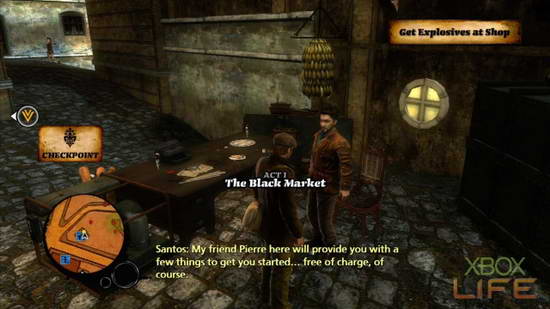 取得Santos的信任后,他将会提供更多的服务给史恩,但是他再三的强调「这都是需要代价的!」。对话过程中,Santos要求史恩必须摧毁一座哨戒塔、几名纳粹以及一部军用车。结束对话后,玩家可以从一旁的军火贩卖商免费取得一些炸药,并且利用这些炸药完成Santos所要求的任务。