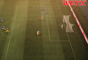 先用射门+超级取消迷惑对方,接着左脚VOLLEY,NND门柱