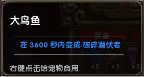 3)宠物变身3600秒的鱼,全12种,与120秒变身鱼全对应(难度2)