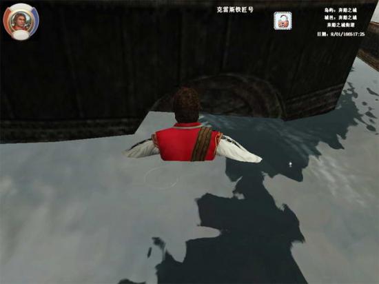 还好,我找到一个上岸的地方,不然,我得在海水里过夜了。游到『克雷斯铁匠号』的船头,这里有个门 ,可以上来。