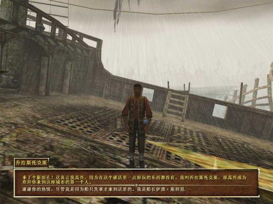 在去沉船岛的路上,暴风雨呼啸而至,一个大浪掀翻了我的船,在寒冷的海水与呼啸的厉风中,我失去了知觉,当我醒来时,已经来到了一个不知名的岛屿上,说是岛屿,其实不其然,映入我眼帘的是许许多多破旧的大船的残骸,他们奇迹般的链接在一起,在这狂风暴雨肆虐的夜里。看来这里就是提塞曾经到过的正义岛——沉船岛。