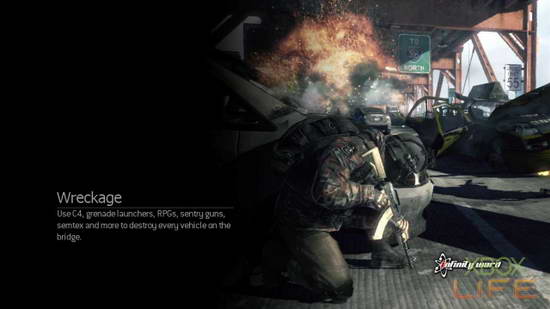 这个任务要取得三颗星评价非常简单,只要使用爆炸性武器杀死36名敌人即可过关,并且成功破坏5辆载具时,还可以获得30秒弹药无限的奖励。玩家只要捡取任务一开始所提供的榴弹发射器,在30秒弹药无限的奖励下,毫不客气地狂射敌人即可轻鬆过关。值得一提的是,弹药无限的奖励连手榴弹也是无限自动补充,因此也可以拿来炸敌人。