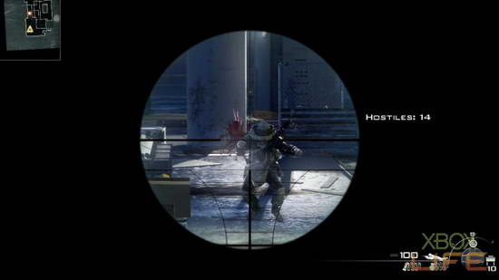 这个任务的偷吃步打法,让笔者想到电影「大敌当前」里的台词:「我是猎人,等待最佳的时机射杀猎物」,玩家只要捡取一开始所提供的贝瑞特狙击枪与榴弹发射器后,就可以直接爬到这个鹰架上等待阿诺的出现。