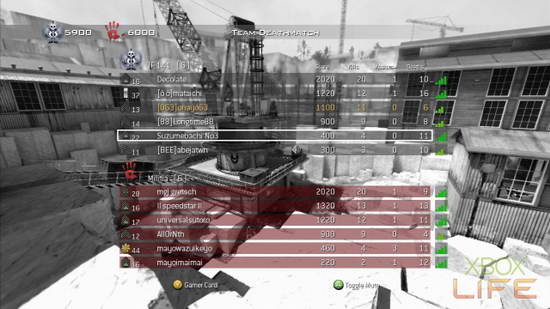 按BACK键可观看比赛战绩与连线品质,右方绿色连线品质3格以上都还能接受。有些玩家为求更有利的射击条件,只挑有4格以上的战场来打。