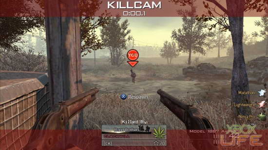透过重播影片瞭解对决失败的原因,可怕的双散弹枪,在这种中近距离只需左右手同时开一枪,笔者立刻挂点。瞄的真准啊~