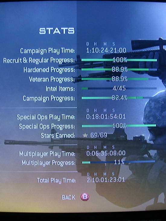 单人剧情正用老兵破解中,已经玩到倒数第二个mission了…先写个心得喘喘气!不过看看我special ops,真的是69星哦!哈哈