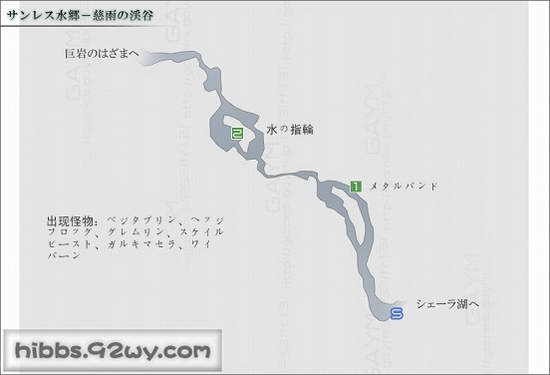 一夜情之后,香草去河边找到黑人继续前进,虹降り峠⇒シェーラ湖⇒慈雨の渓谷。跑上会发现有个光球浮在空中,调查的话就会引起天气变化(晴天/雨天),天气会导致周围的怪物种类发生变化。一路小跑,善用这些光球转换天气来回避一些比较强的怪物。